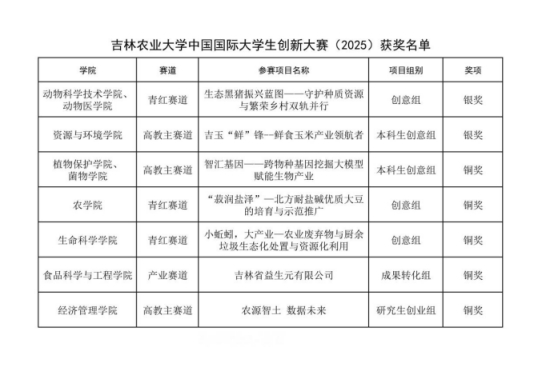 吉林农业大学在中国国际大学生创新大赛(2025)上取得佳绩
